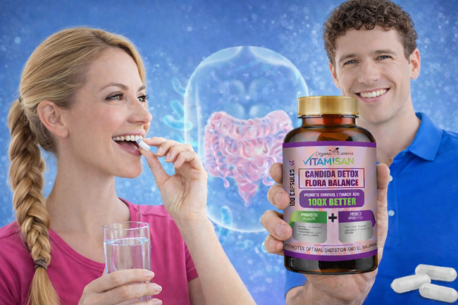 That’s why Vitamisan Candida Detox Flora Balance was formulated to support your microbiome naturally with a smart combination of probiotics and prebiotic fiber — working together for complete digestive support.