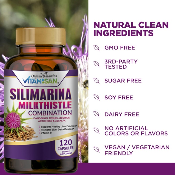 • MILK THISTLE COMBINATION 120 Capsules.Silimarina, Dandelion, Fennel, inositol, Folic Acid, Complex B and Licorice.Formulated to help protect and strengthen your liver with a blend of herbs that help promote healthy liver functions and help stimulate the release of biles.MILK THISTLE COMBINATION 120 Capsules. Silimarina, Dandelion, Fennel, inositol, Folic Acid, Complex B and Licorice.Formulated to help protect and strengthen your liver with a blend of herbs that help promote healthy liver functions and help stimulate the release of biles.Milkthistle Silimarina combination Dietary Supplement 120 Capsules: